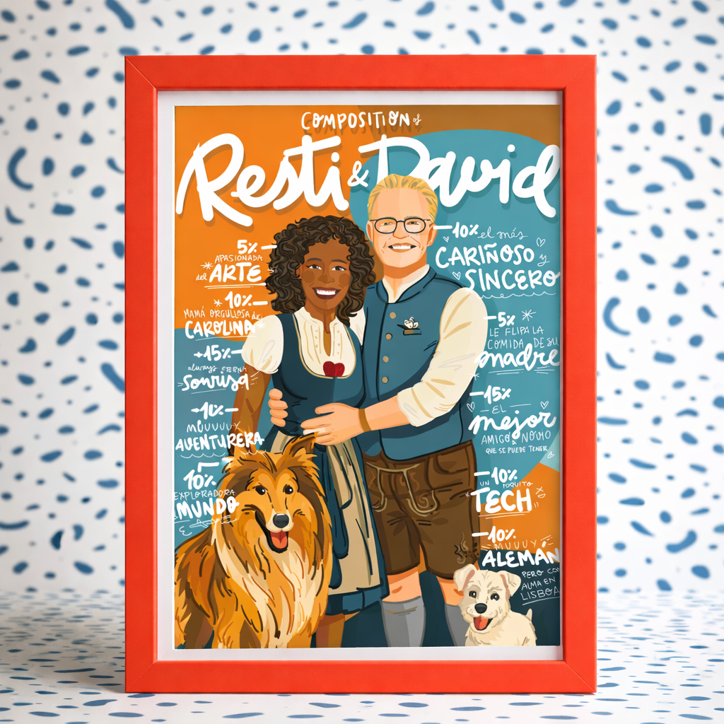 Una ilustración personalizada donde mezclo retrato, color, composición y palabras.